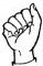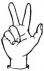 На ћирилици написано РУМЕНА КРЉАР састоји се из 11 слова [?]. Исписано ћириличном једноручном азбуком за глувонеме: